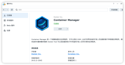 1、先安装ContainerManager套件(docker),以下简称docker