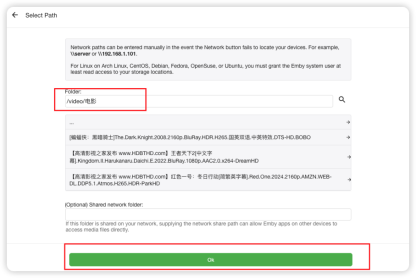 在安装Embyserver前先连接好音乐和视频的共享文件夹