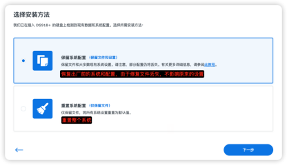 3、在电脑的浏览器输入ip进入后台后会提示你重新安装dsm