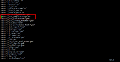 向下移动光标,找到:support_disk_compatibiliy=“yes”,