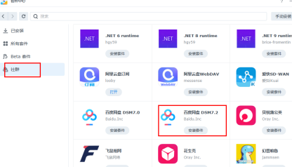 默认系统是7.2.1的选择安装套件:百度网盘DSM7.2 套件