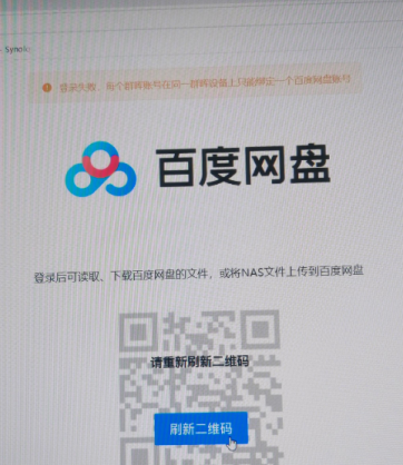A、如果出现:登录失败:每个群晖账号在同一个群晖设备只能绑定一个百度网盘账号 的提示