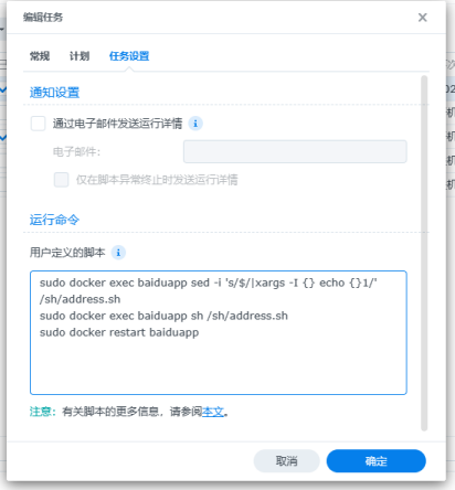 sudo docker exec baiduapp sh /sh/address.sh
