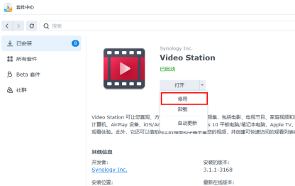 2、停用videostation套件