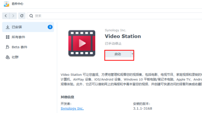 安装videostation套件前先安装Advanced Media Extensions,可以看看网站教程:激活Advanced Media Extensions