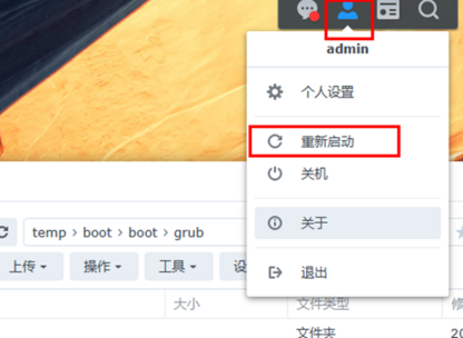 4、找到boot文件夹里面的grub文件夹,再在里面找到user-config.yml文件,并把文件下载到电脑上。