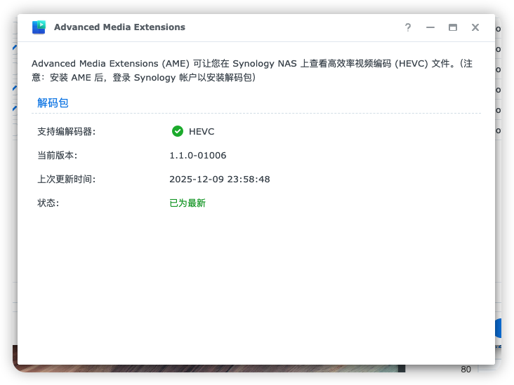 DSM7.22 以后就通过套件中心安装 Video Station 会提示 Advanced Media Extensions 没有安装,而 7.22 版本后 Advanced Media Extensions 如果没有洗全白的群晖系统无法直接解锁 AME,下面针对 7.22 或者 7.3 版本安装 Video Station 的教程。