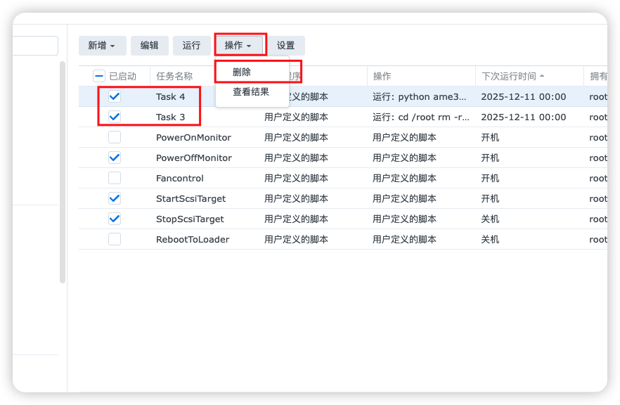 14、最后把刚才新建的 2 个自定义任务脚本删除