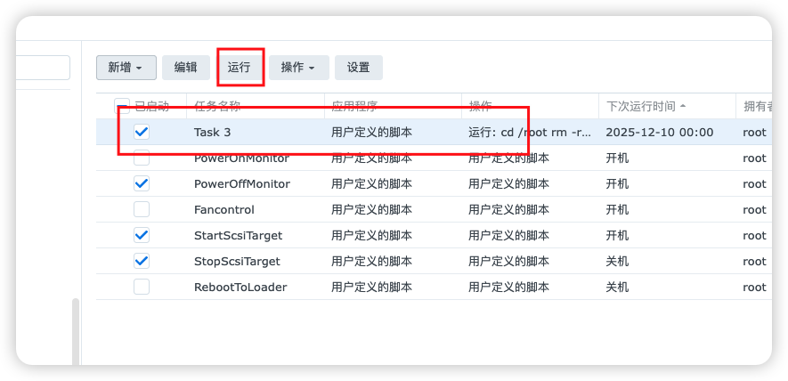 运行后等 5-10 分钟,系统自动安装完(如果 5-10 分钟没有安装完)再运行一次自定义任务