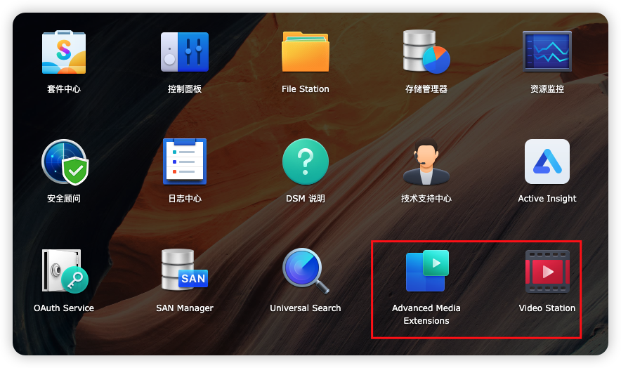 如果原来已经通过套件中心安装了 Video Station 套件和Advanced Media Extensions 套件,先通过套件中心,把套件卸载了再按下面教程重新安装。