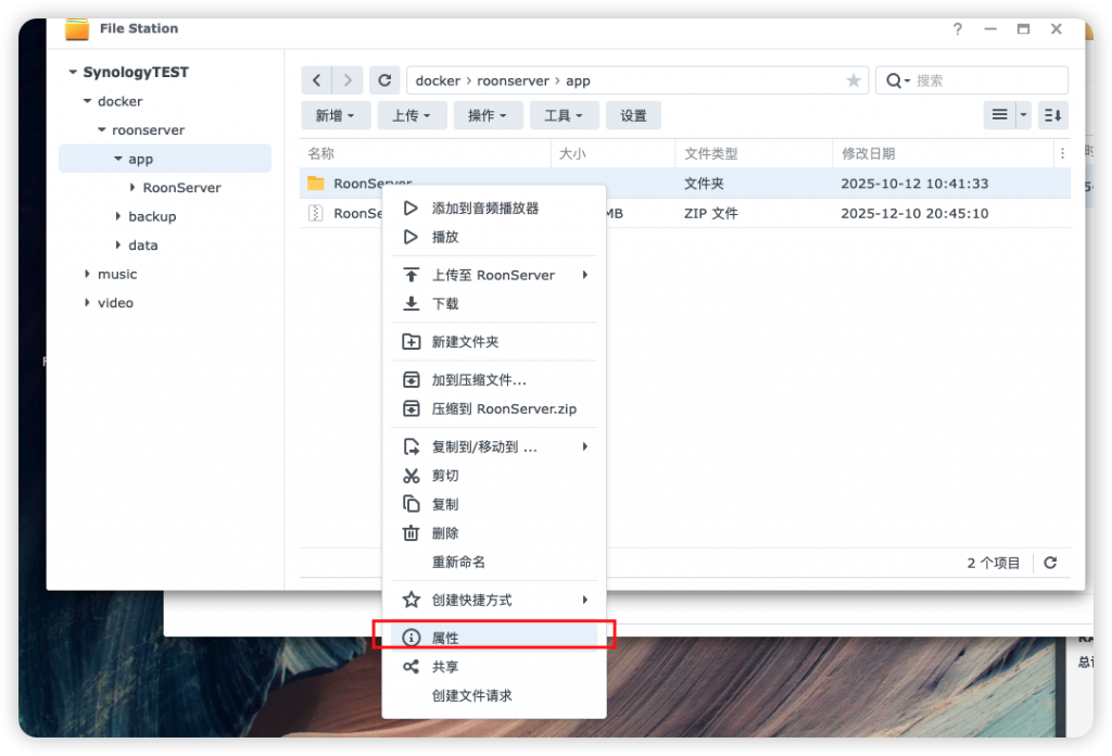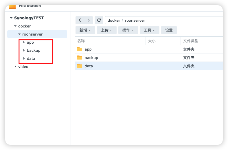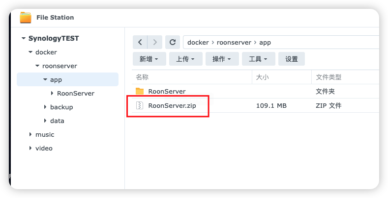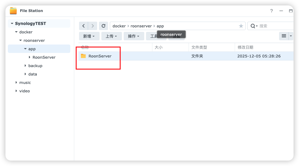 打开 FileStation,打开刚才新建的 app 文件夹看到多了一个 RoonServer 的文件夹