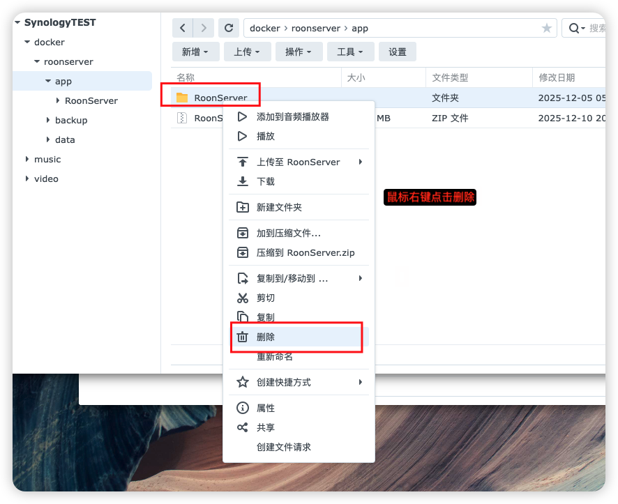 删除原来的 RoonServer 文件夹