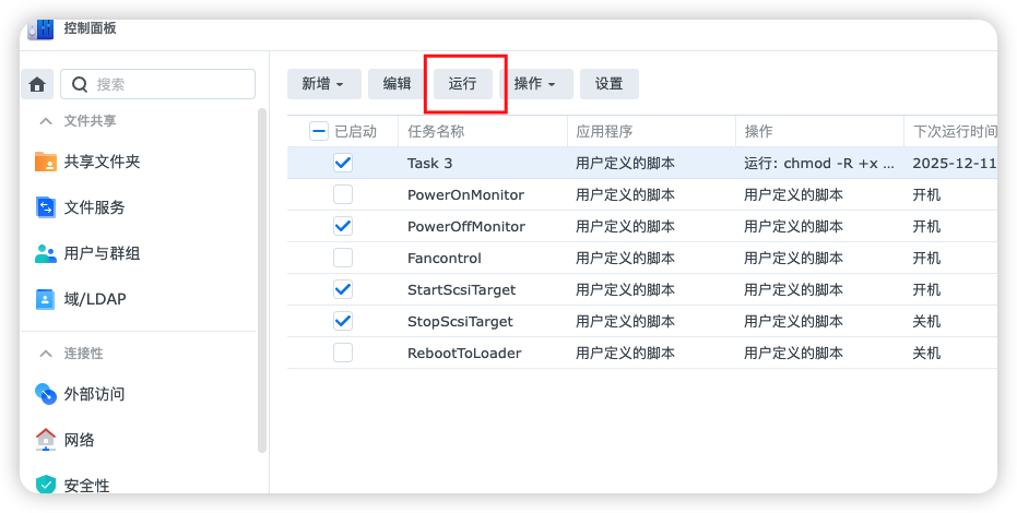 返回后,选择刚才添加的自定义任务——点击上面的运行